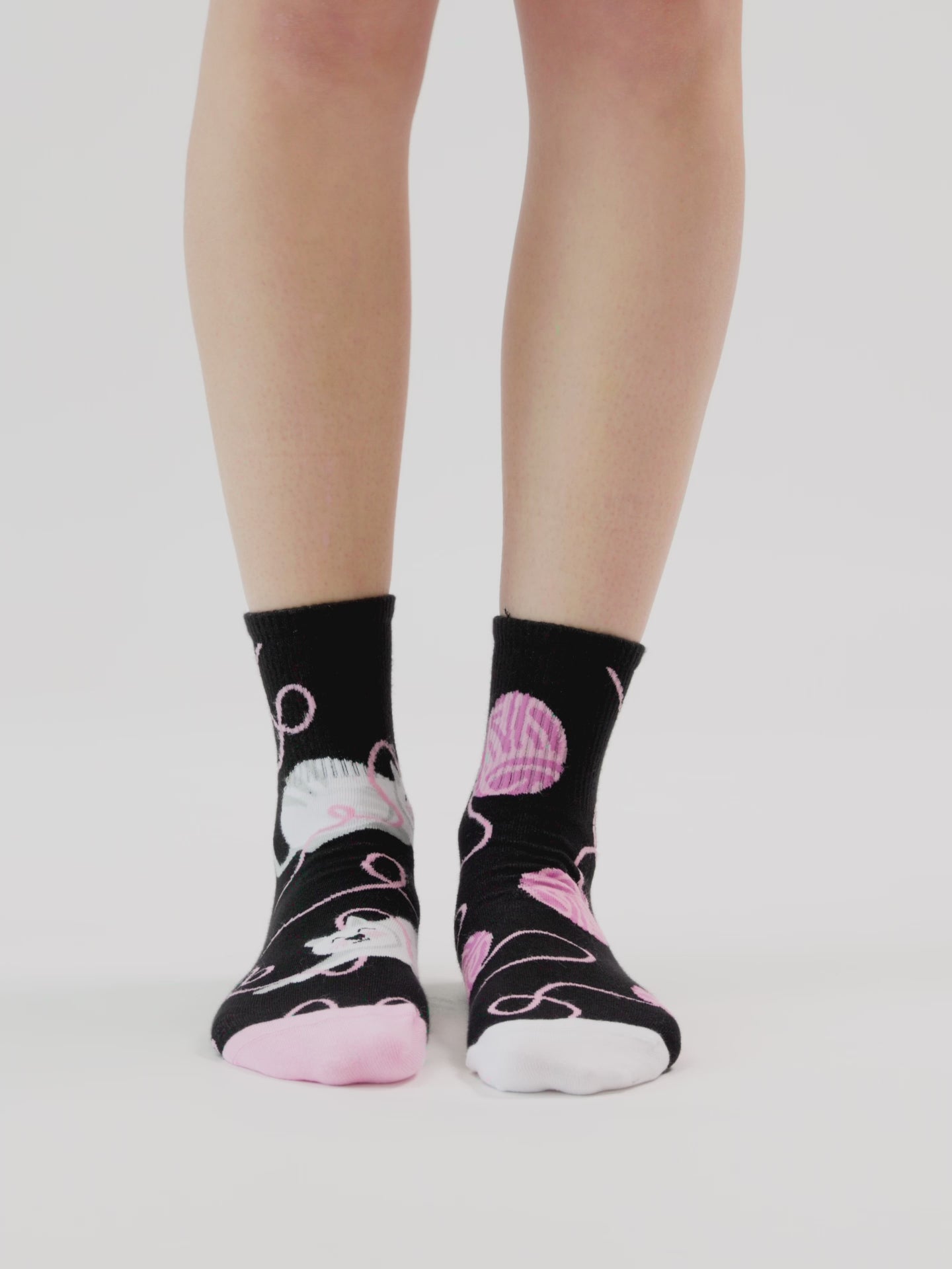 Savais-tu que les chats dorment en moyenne 16 heures par jour ? Et que font-ils quand ils en ont assez de dormir ? Ils jouent ! Fais plaisir à tes pieds en portant nos chaussettes mi-mollet rigolotes mettant en scène un chat mignon et sa balle. Et souviens-toi... N’arrête jamais de jouer !